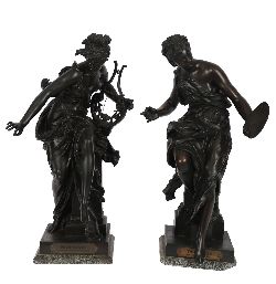 PAIR OF SIGNED BRONZE FIGURES BY ALBERT-ERNEST CARRIER-BELLEUSE - HARMONIE AND PAINTING