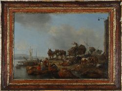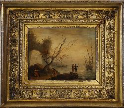 17TH-CENTURY CONTINENTAL SCHOOL OIL ON CANVAS - COASTAL ENCAMPMENT SCENE