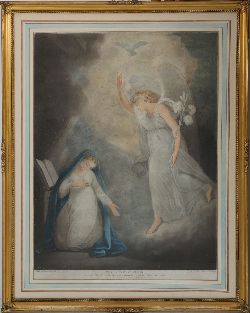 PAIR OF 19TH-CENTURY STIPPLE ENGRAVINGS - THE ANNUNCIATION AND THE DESCENT FROM THE CROSS
