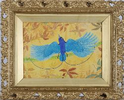 SET OF THREE 19TH-CENTURY REVERSE PAINTINGS ON CONVEX GLASS