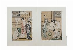 TORII KIYONAGA (1752 - 1815) - WOMEN IN THE BATHHOUSE, PAIR OF UKIYO - E WOODBLOCK PRINTS