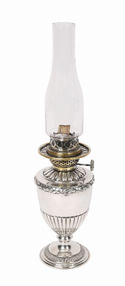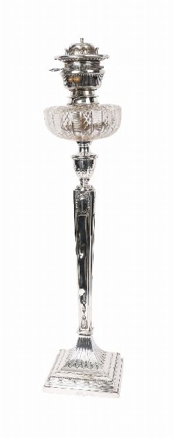 MAPPIN & WEBB SILVER PLATED AND CRYSTAL OIL LAMP