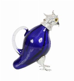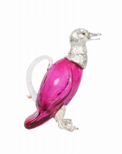 MURANO GLASS AND SILVER PLATE DUCK-FORM DOUBLE DECANTER, 20TH CENTURY