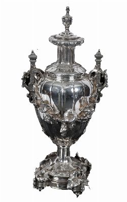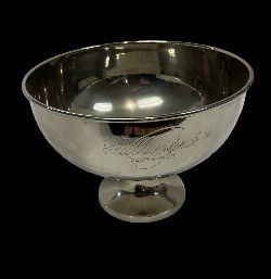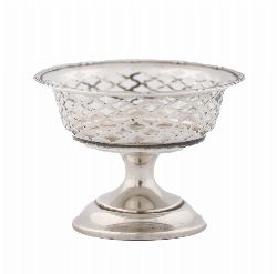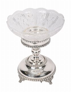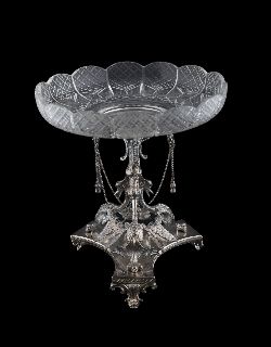 IRISH CUT GLASS CENTREPIECE ON A DANIEL & ARTER SILVER-PLATED TRIPART STAND