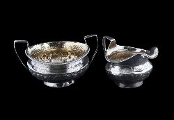 IRISH SILVER SUGAR BOWL AND SUGAR TONGS