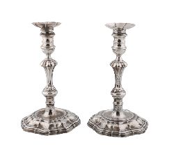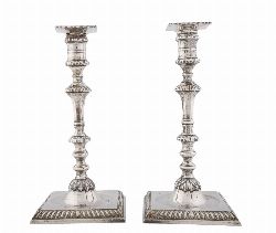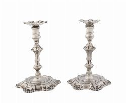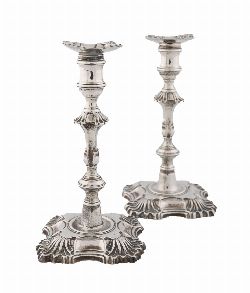 PAIR OF GEORGE II SILVER CANDLESTICKS BY JOHN CAFÉ
