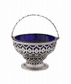 GEORGE III SWING-HANDLED SILVER SUGAR BASKET