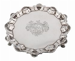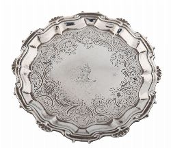 GEORGE II SILVER CIRCULAR WAITER BY RICHARD RUGG, LONDON 1758