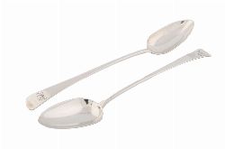 PAIR OF GEORGE III SILVER OLD ENGLISH PATTERN BASTING SPOONS