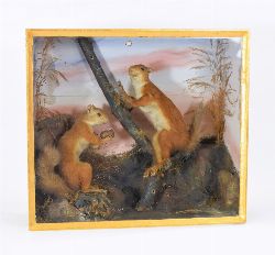 TAXIDERMY GROUP OF TWO SQUIRRELS IN GLAZED CASE