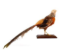 TAXIDERMY GOLDEN PHEASANT ON MAHOGANY BASE